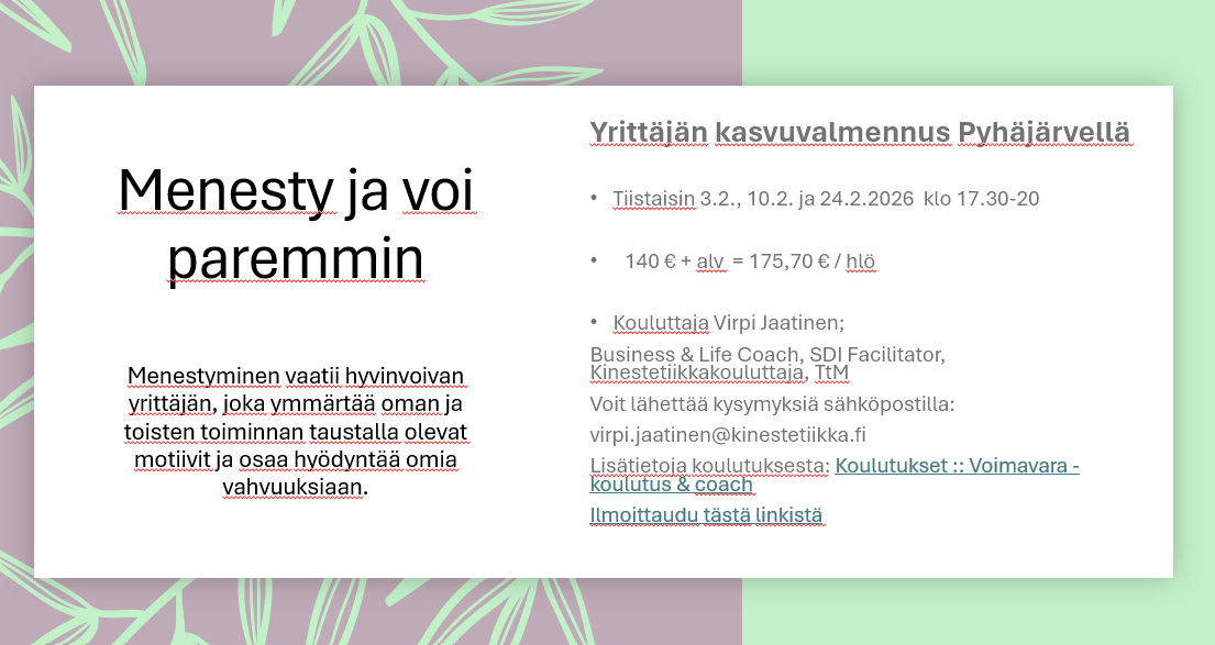 Menesty ja voi paremmin - Yrittäjän kasvuvalmennus